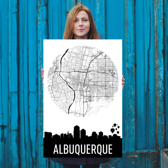 The beautiful city of Albuquerque is highlighted on this special art print that offers a hot air balloon’s eye view of the city from up above. It shows off the many roads where various art galleries, wineries, movie sets and other features of the New Mexico city can be found. It then moves down to show off the full skyline of the city. Watch as the Albuquerque skyline art piece shows off the Plaza Office Tower and the Hyatt Regency hotel not too far from it. You will even see some hot air balloons rising off over the skyline. This makes for a fine souvenir that will remind you of a trip to the city and even a ride up in one of those balloons.