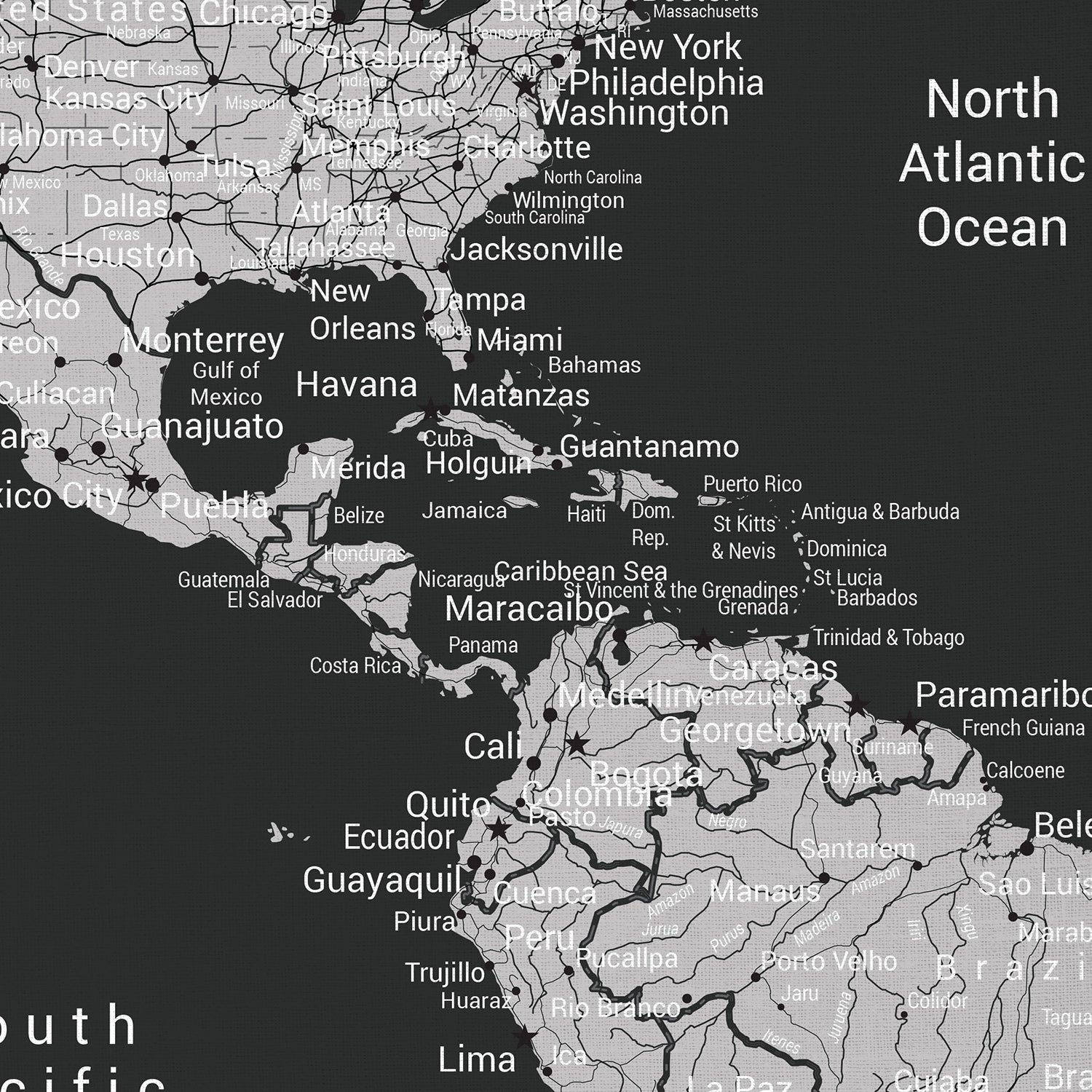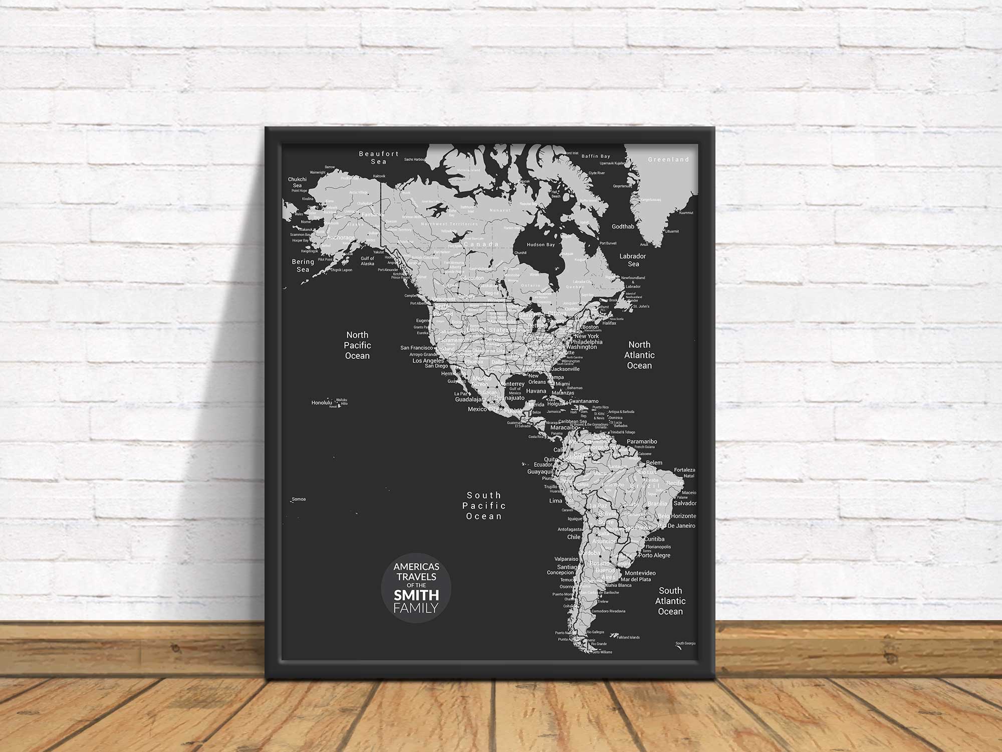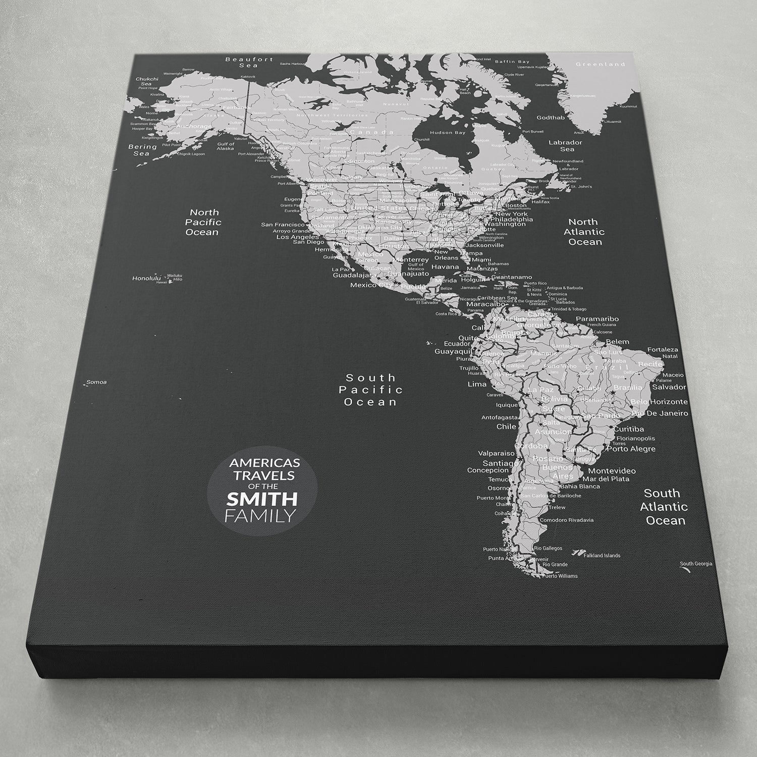 Americas Push Pin Map - Black and Grey - With 1,000 Pins!