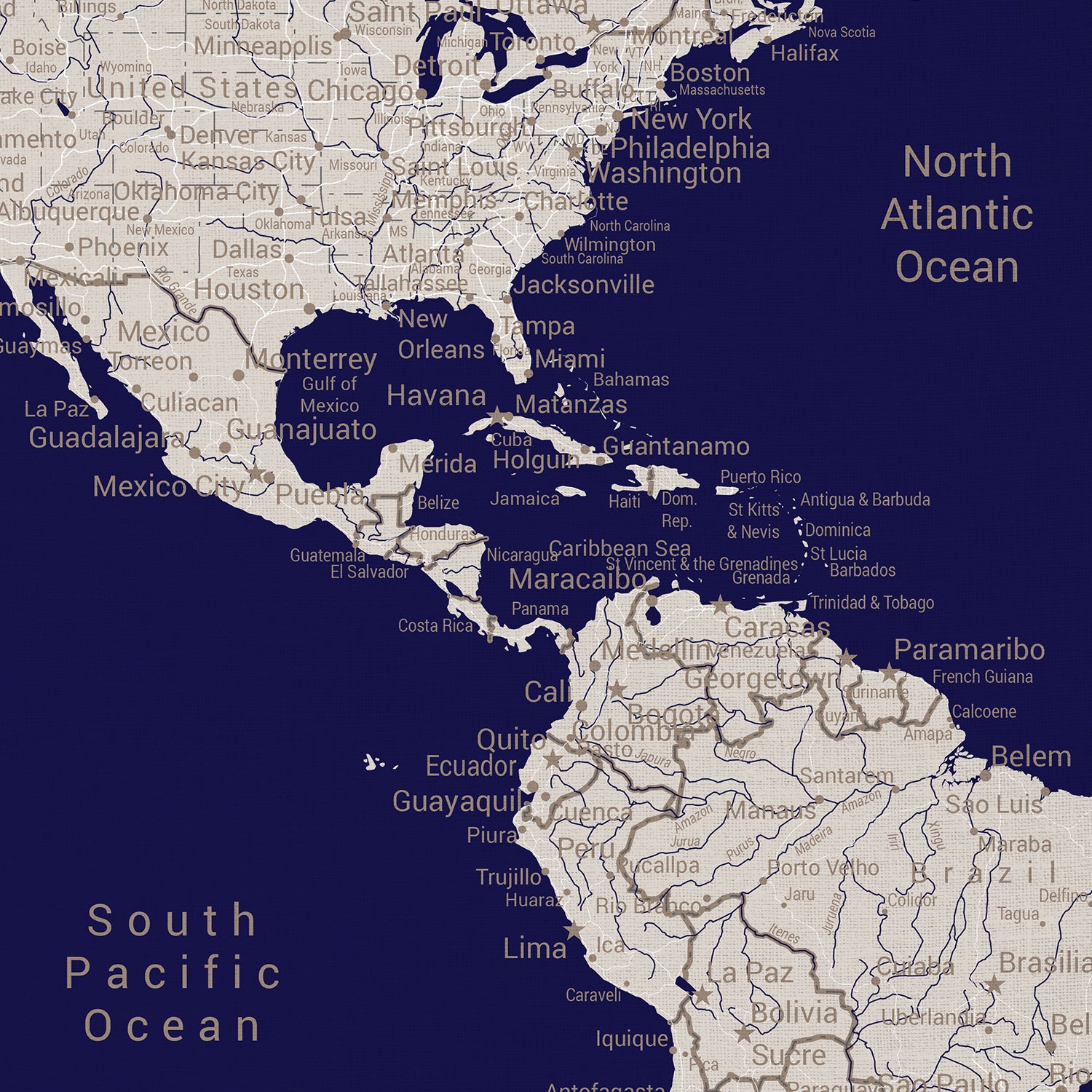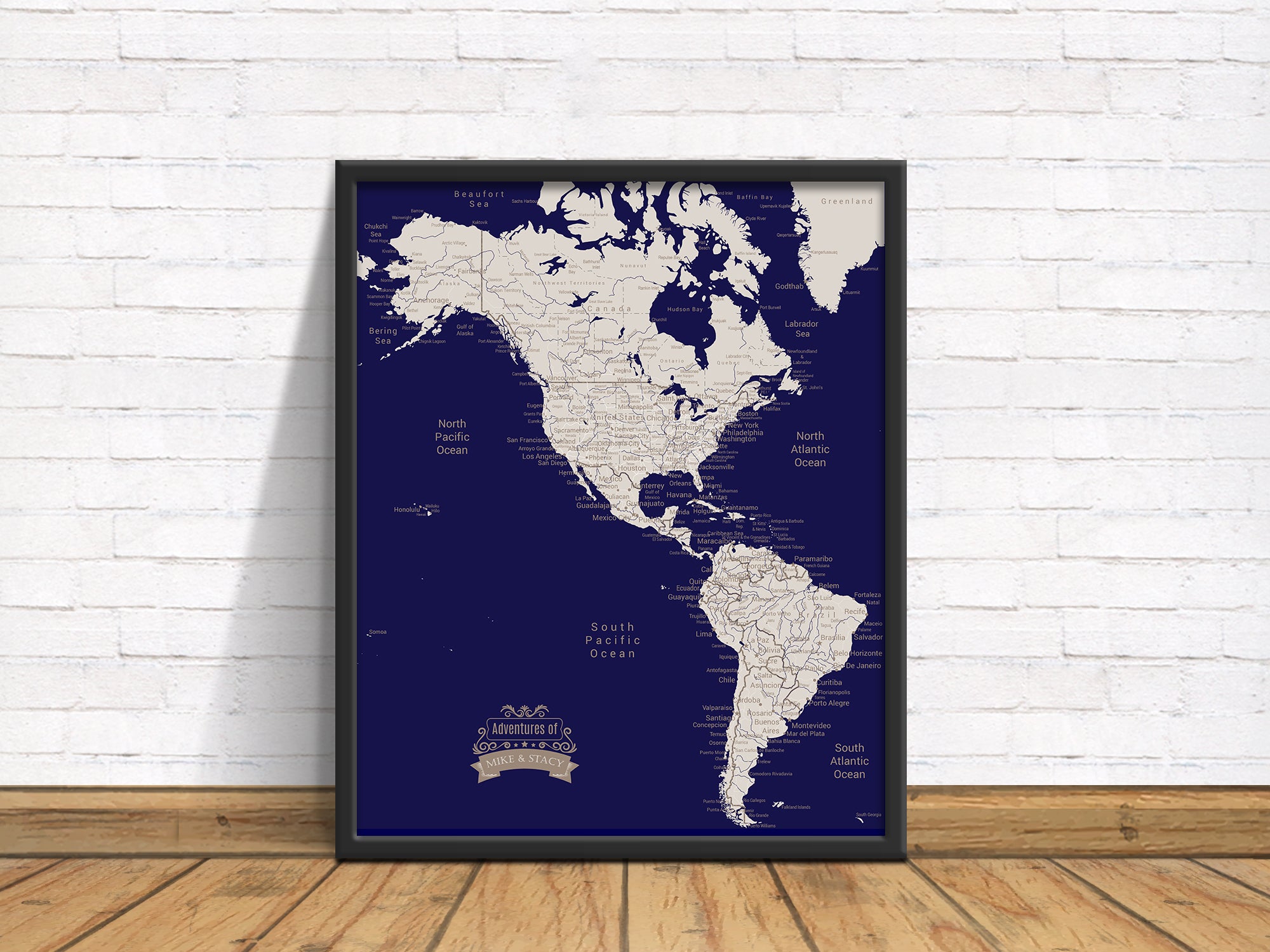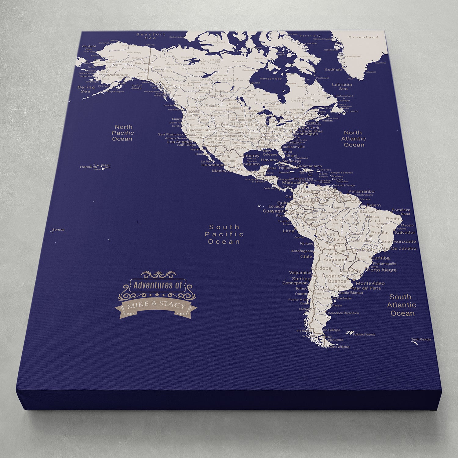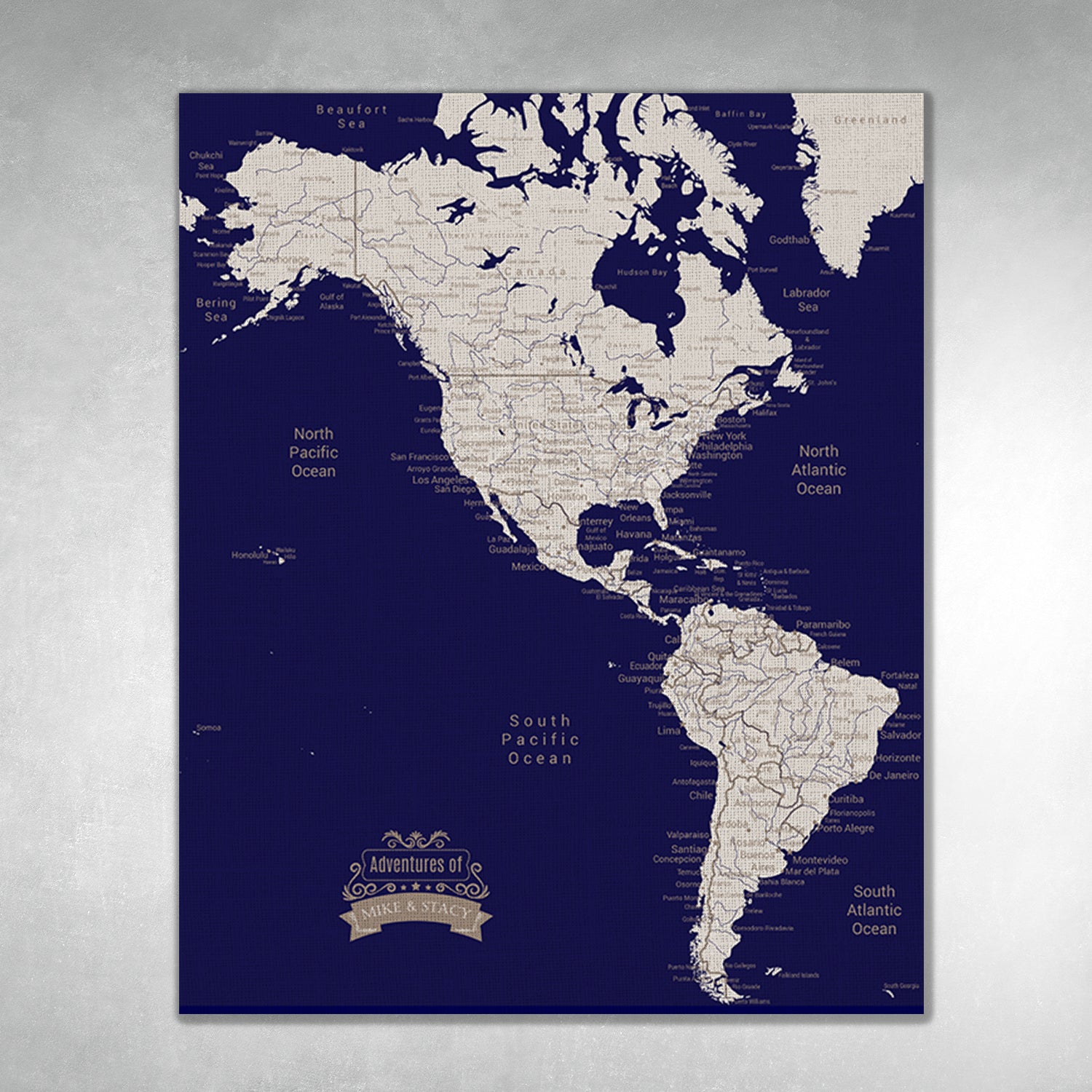 Americas Push Pin Map - Navy blue - With 1,000 Pins!
