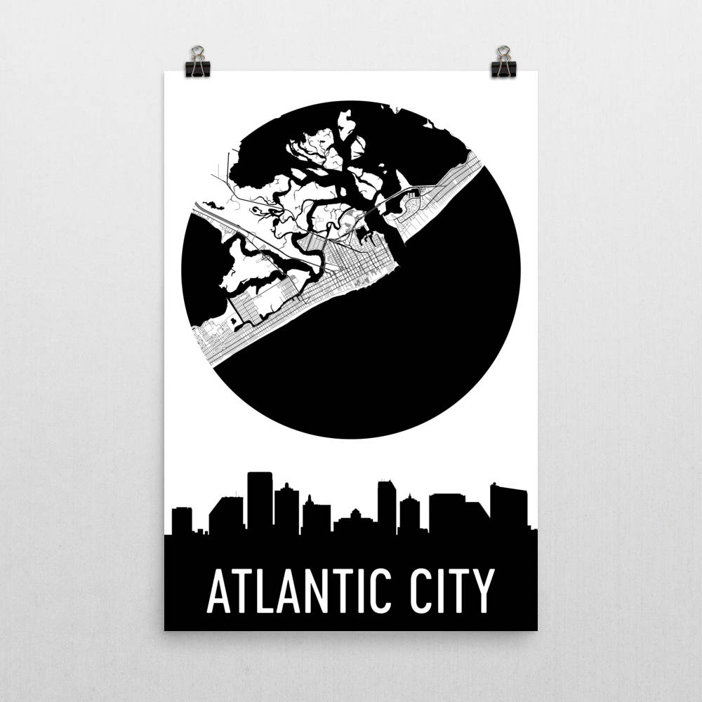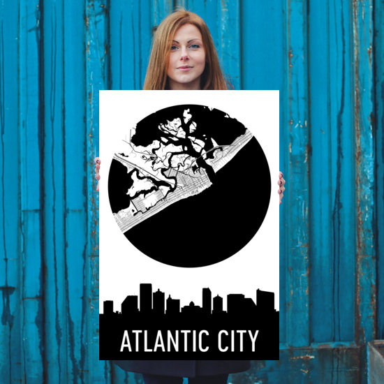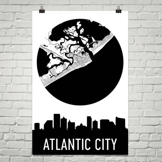 You don’t have to press your luck to get this Atlantic City skyline print. Look to the top as you notice the New Jersey city as it forms alongside the Atlantic Ocean. Look for the Boardwalk and other famous roads in the city like Atlantic Avenue, Pacific Avenue and Park Place. Watch as some of the famous resorts and casinos are formed on the Atlantic City skyline with the Revel, Harrah’s, Hard Rock, Borgata and Bally’s resorts highlighted here. The beautiful look of this art print will remind you of the fine casinos and shores that only a place like Atlantic City could be home to.