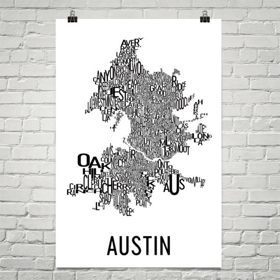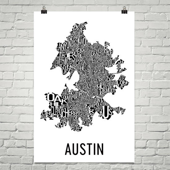 The capital city of Austin is on full display on each of our Austin wall art prints. These prints show the city’s neighborhoods in a clear typography-based layout. Look around the sprawling landscape to see your favorite parts of the city including Hyde Park, Barton Hills, Travis Heights, and much more. Look as the Red River makes its way through the center of the city. This is a brilliant gift for anyone who lives in Austin and is especially perfect for students who attend one of the city’s prominent colleges. Every corner of the city is on full display on each print we sell.