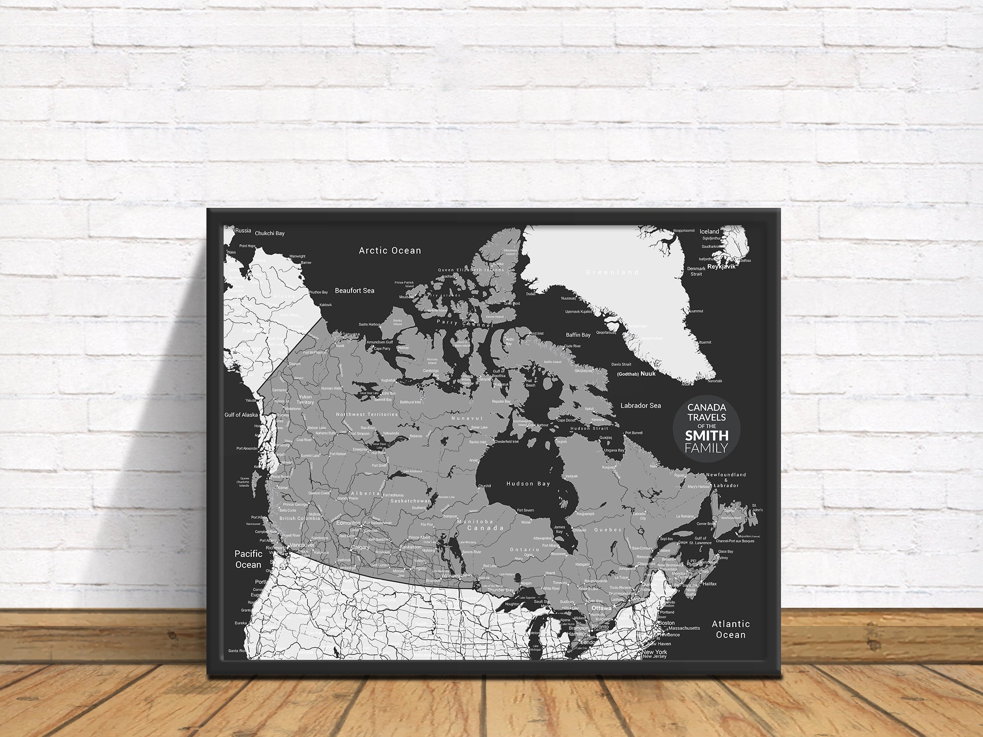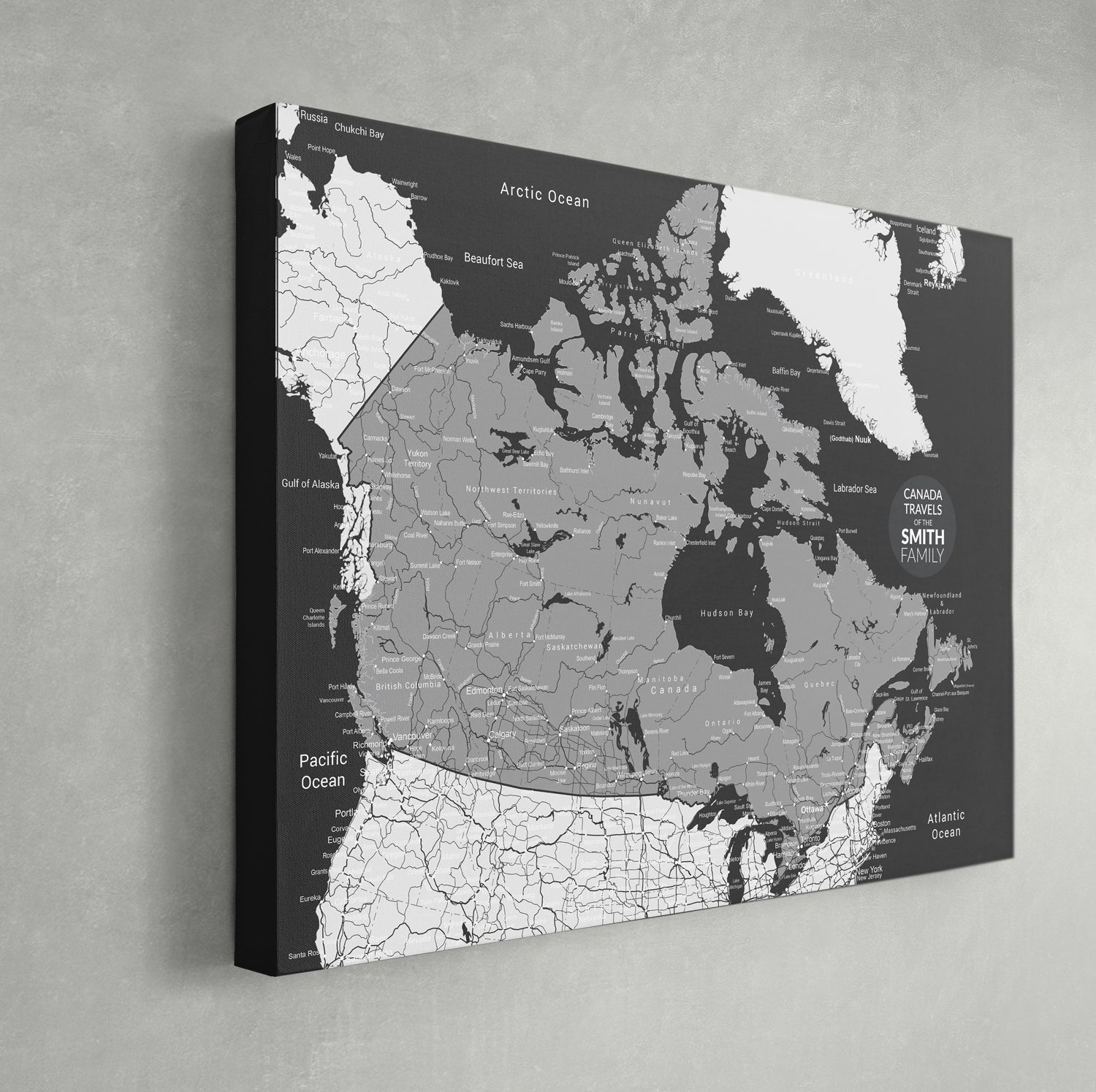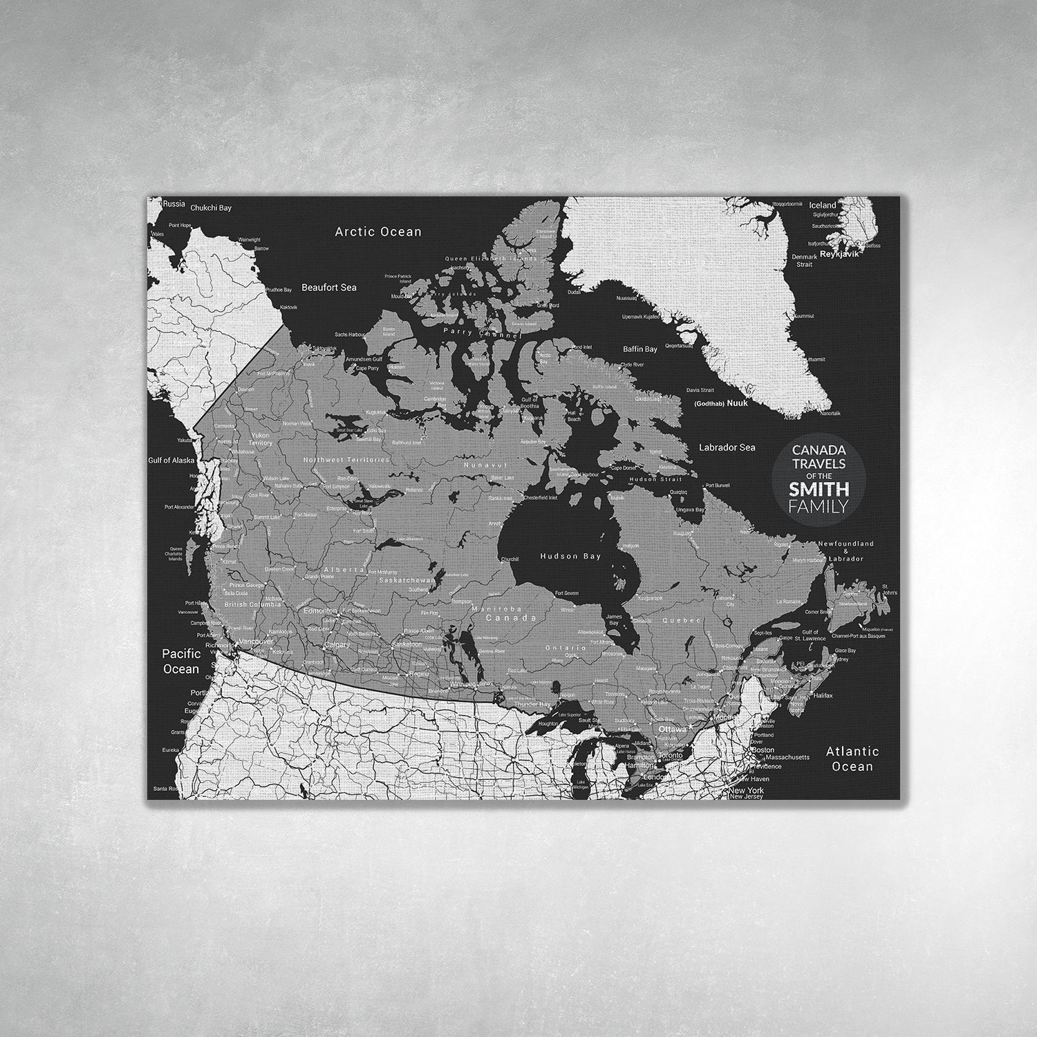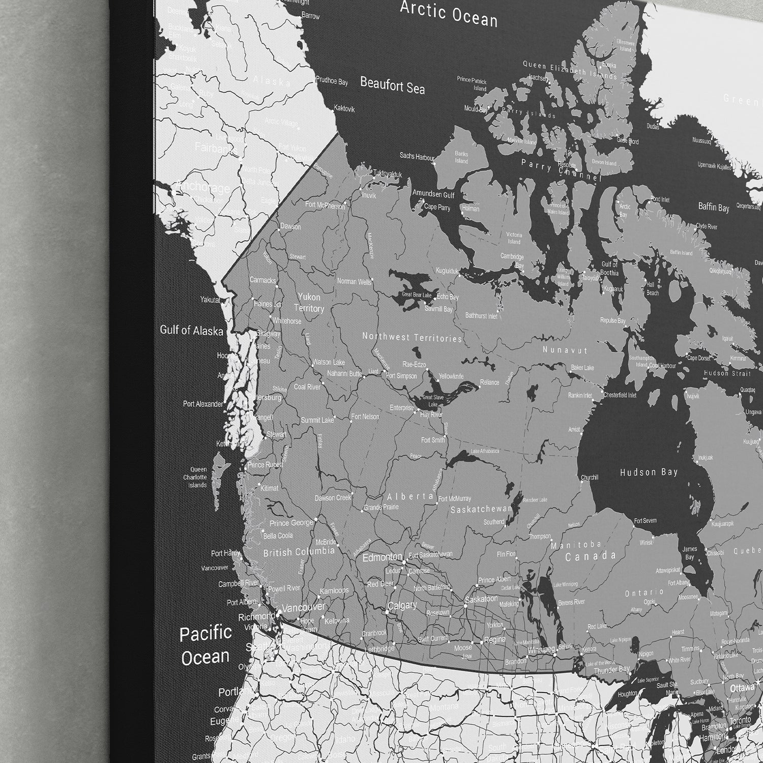 Canada Push Pin Map - Black and Grey - With 1,000 Pins!