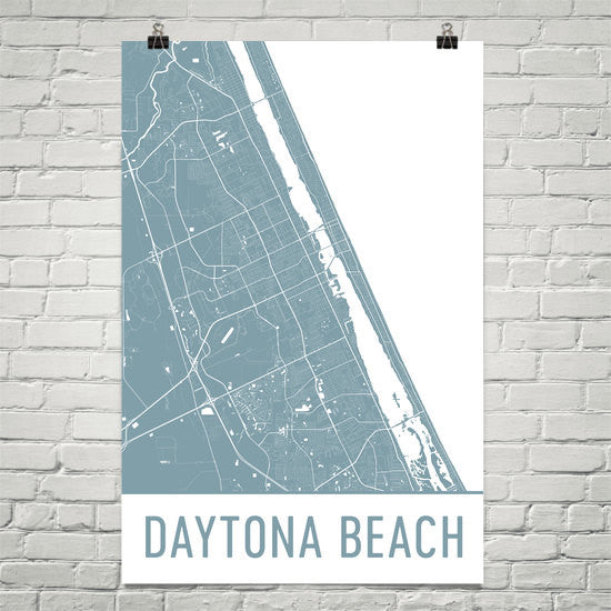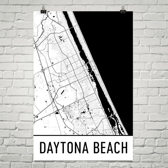 This street map features markings of all the roads and major bodies of water all around Daytona Beach. This décor product features thousands of street lines and several bodies of water both big and small. Look all around to find your favorite landmarks around the city as you follow the highways, waterways and even rail or mass transit system lines. The poster will remind you of the many beautiful things that you will see all around the city.