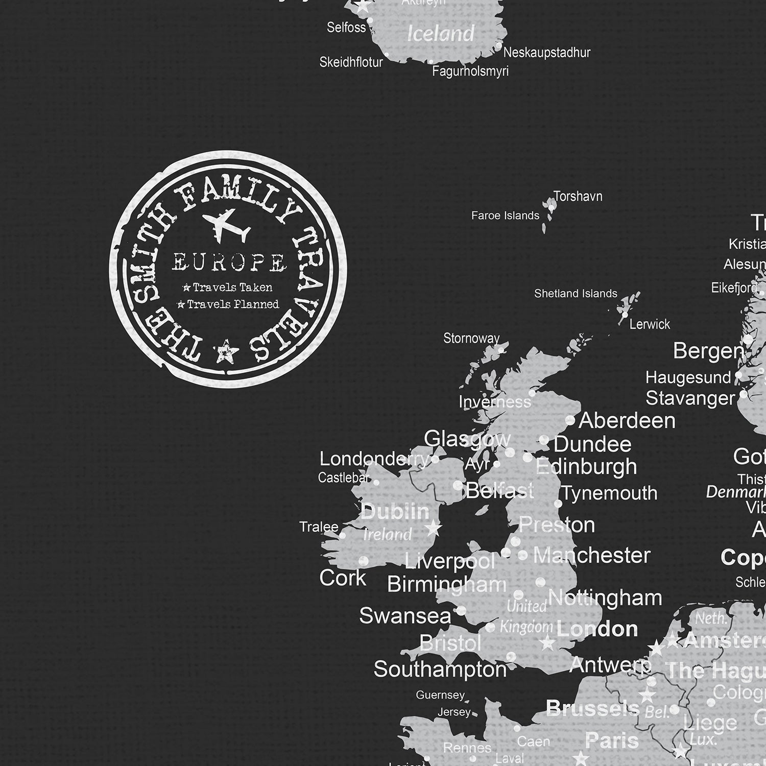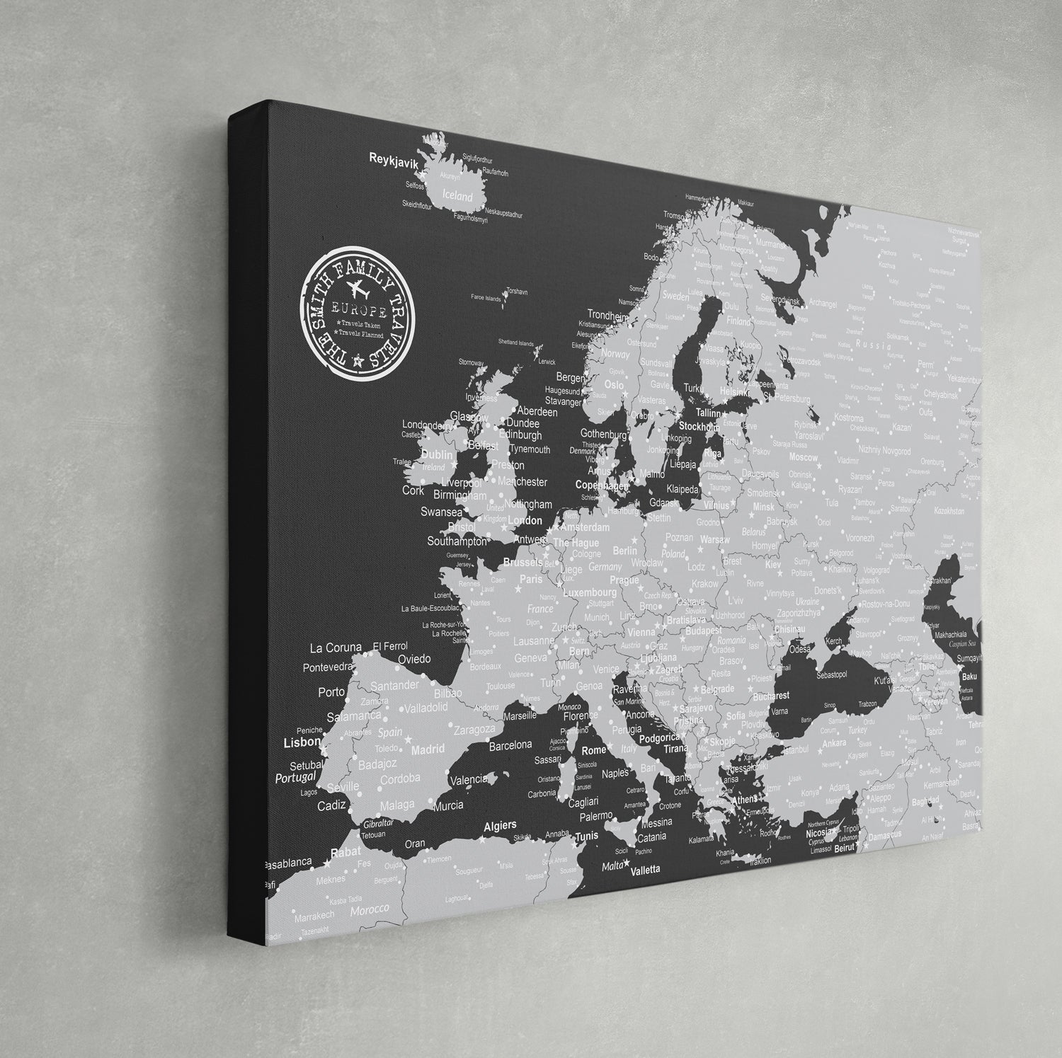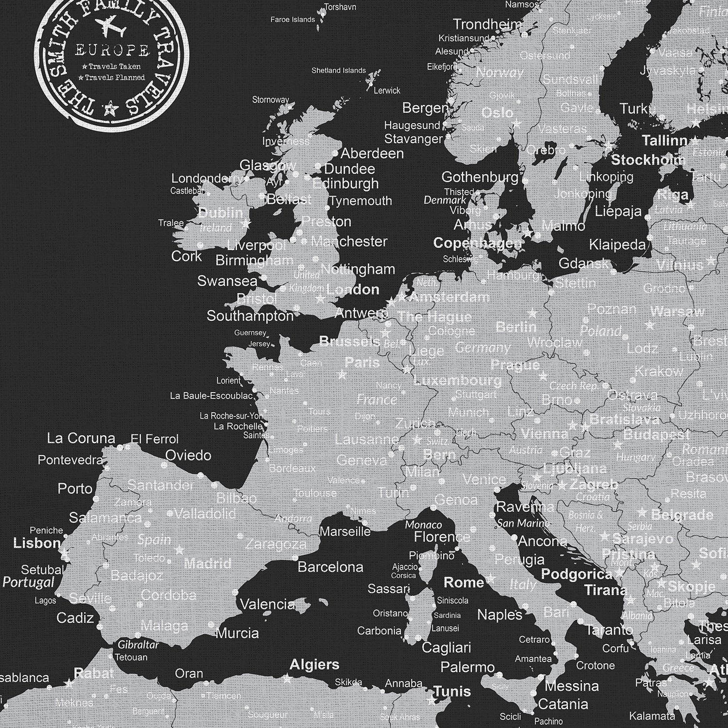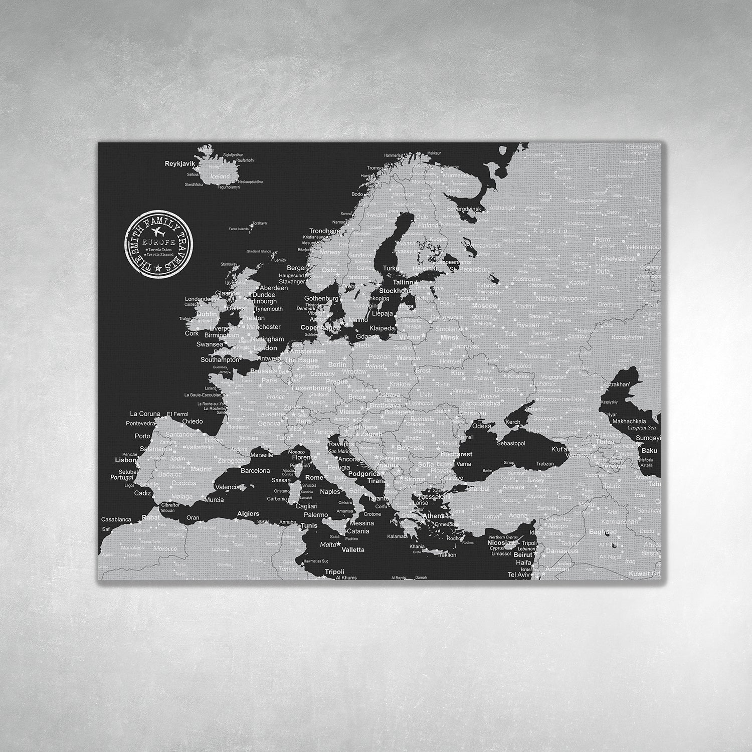 Europe Push Pin Map - Black and Grey - WITH 1,000 PINS!