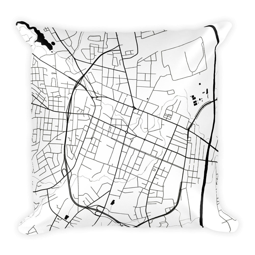 Each pillow is designed with a detailed listing of the roads around the Fayetteville. Our black and white Fayetteville map pillow designs come with a full street map with thicker roads symbolizing major highways and other throughways. Dark spots are used to symbolize the bodies of water all around. This is a unique way for you to show your love for Fayetteville as it brings a bit of the city to your home.