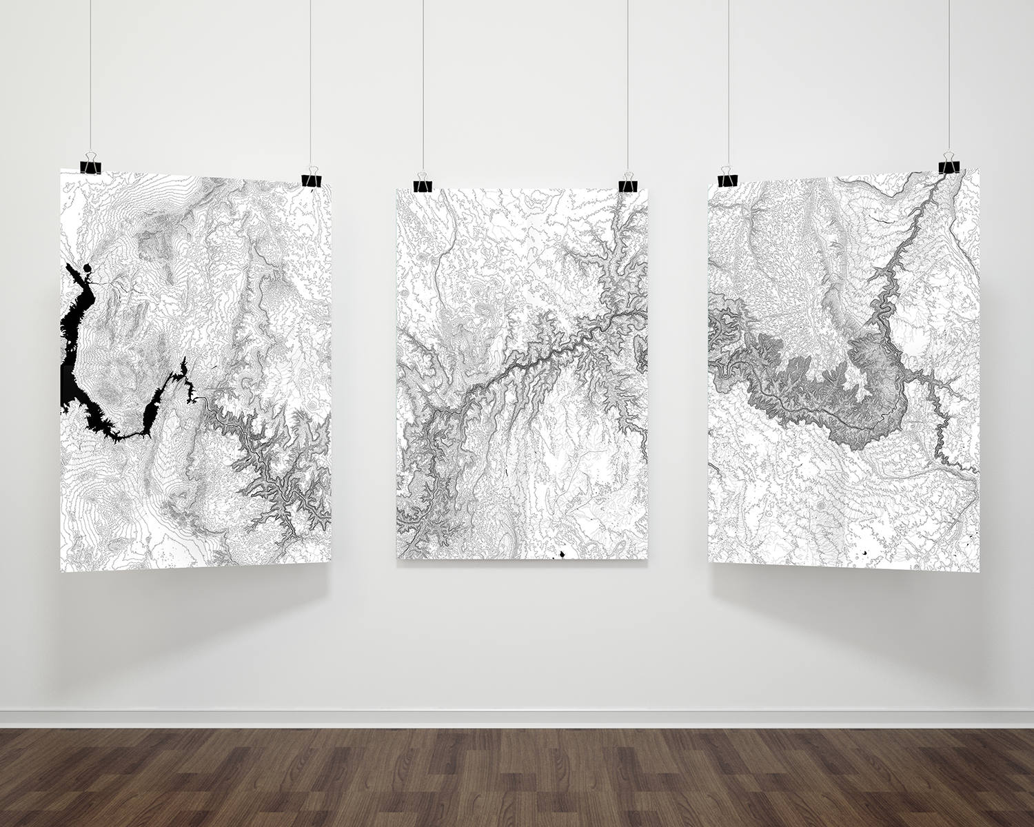 The Grand Canyon is such a beautiful and vast place that it needs more than just one fine print. This three panel Grand Canyon poster reveals the full layout of this special part of the United States. Watch as this Grand Canyon map illustrates the chasms, rivers and inlets of the region. The contour lines reveal the depths of the canyon and the many growths all around. It will bring back memories of the paths, trails and other features that make this part of the country unique. Order our Grand Canyon map as a nice souvenir of a trip to this massive land space.