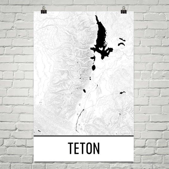 The Tetons are beautiful mountains in Wyoming to explore, but only those who are experienced in climbing or hiking can make it to the top of the Grand Teton Mountain. When you look at this Grand Teton print, you will see how the mountain area is produced. Go north to see the lake or west to see how the ridges of the mountains stretch out. Spot the contour lines to fine where the Grand Teton, the tallest of all the Tetons, can be found. The fine look of this topographic map is special for anyone to show off thanks to its fine modern art style.