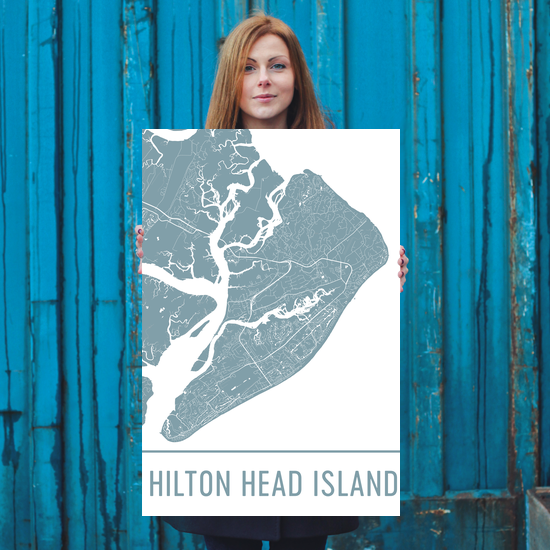 Whether you are from Hilton Head Island or you enjoyed a great trip to the island, you will enjoy having one of these Hilton Head Island poster prints in your home. It is a wall map piece that features a modern art style that comes with a number of details if the roads and waterways of this beautiful place.
