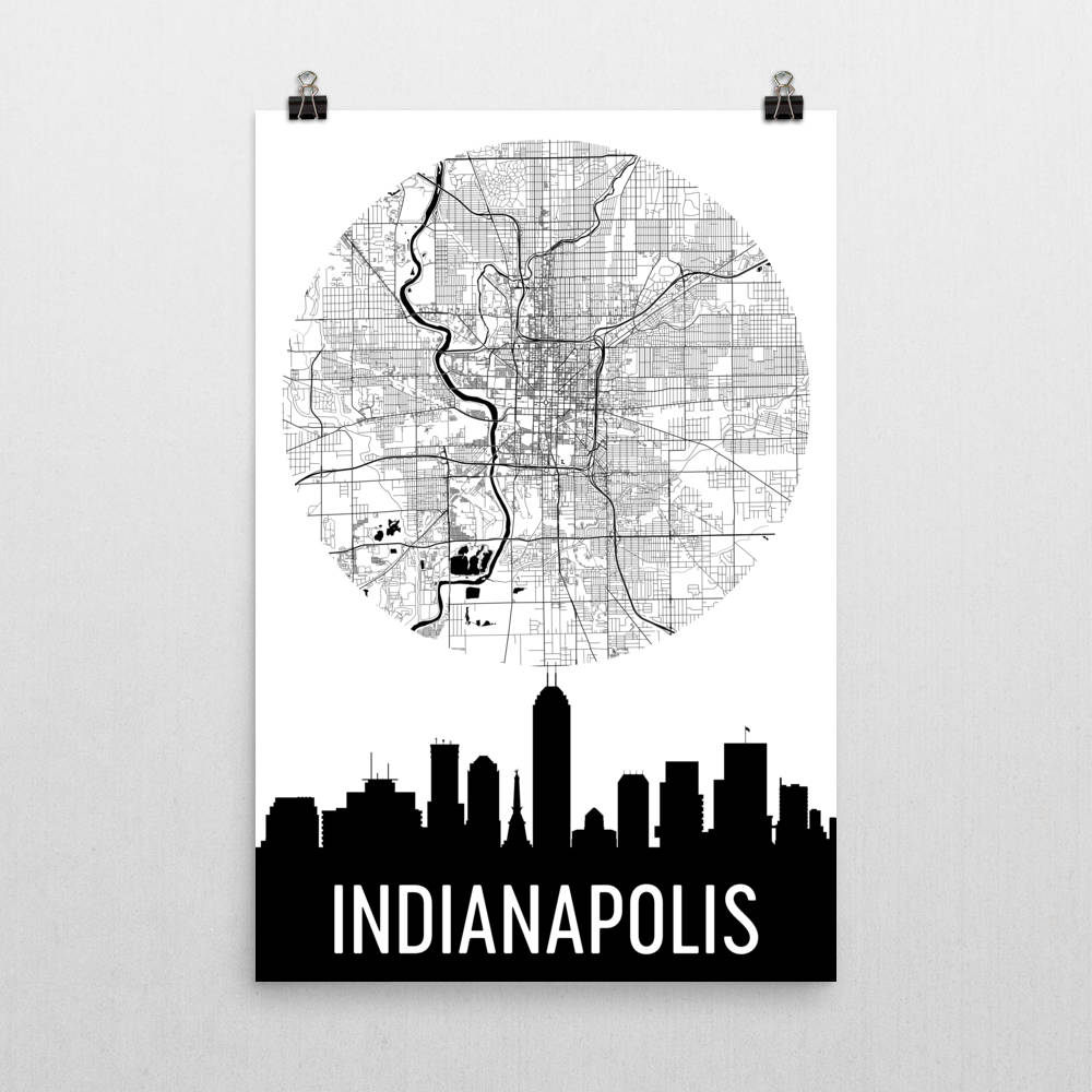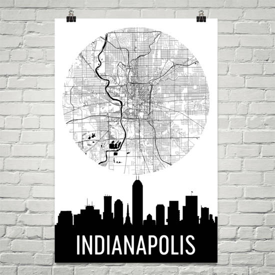 The capital of Indiana is proudly highlighted on this Indianapolis skyline art piece. This features a full display of the city with its major highway moving around in a square layout. You will quickly notice the outside area where the city’s famous racetrack is at. See the twin antennae of the Salesforce Tower while the dynamic curves of the OneAmerica Tower stand out. Look for the state capitol building in the middle while the Soldiers and Sailors Monument honors local veterans not too far off. Order this as a beautiful gift from the city that doesn’t entail going far too fast on the highway.