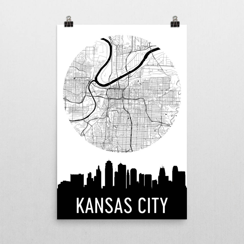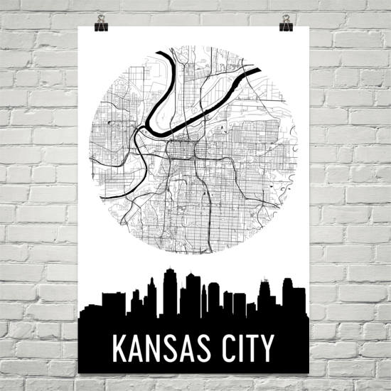 The special organization of this Kansas City canvas art piece shows a full map of the city as it moves around the Missouri River while also showing off a silhouette of its skyline. One Kansas City Place and the Town Pavilion can both be seen standing out as the skyline spreads along the riverside. You will notice many roads on the top with some of them heading into the suburbs and even into Kansas. Look for the local football and baseball stadiums or your favorite barbecue restaurants. The layout of this Kansas City skyline print reveals a wonderful layout you will want to have in your home.