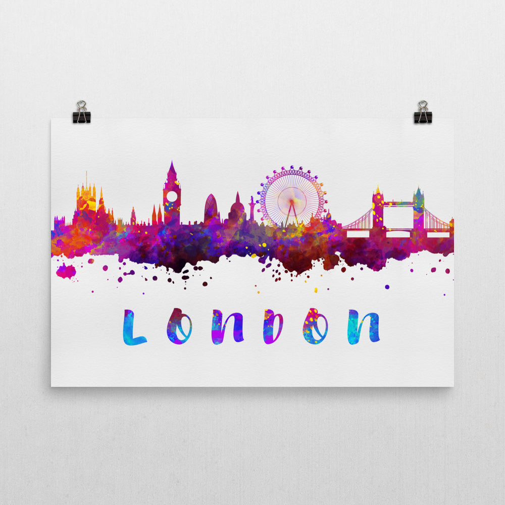 The memorable skyline of London is truly something you will remember in your travels or even if you grew up in this great part of the country. Our London skyline poster design is made with an impression attention to detail. Look for each individual building in the skyline and see how the artistic design creates a beautiful look all the way around. This has been made with an immense attention to detail. Each of these London prints comes with a vibrant watercolor pattern in many colors.