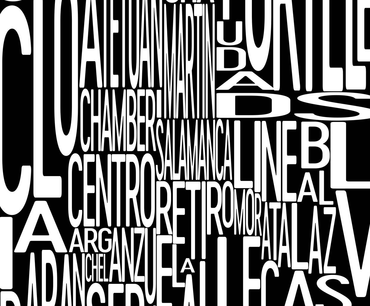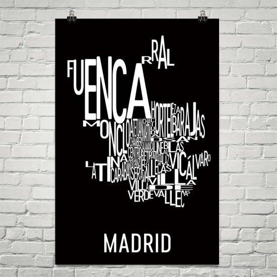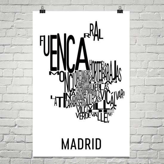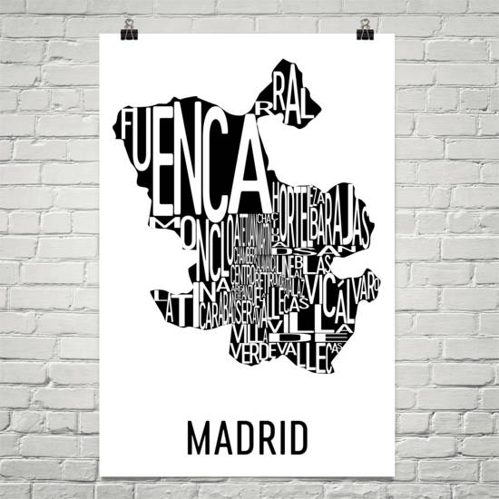 Look as the romantic neighborhoods of Spain’s capital come alive on our Madrid wall art. This Madrid art poster shows all the many regions of the city in a typography-based layout. These are all laid out in the shape of Madrid’s city limits. Look at the Barajas district to the east or see how Fuencarral dominates the northern region. The Madrid modern map art print will remind you of the beautiful streets and architecture of one of Europe’s most beautiful cities. This makes for a brilliant souvenir for anyone who has traveled to the city for a wedding, honeymoon, family vacation or any other special occasion.