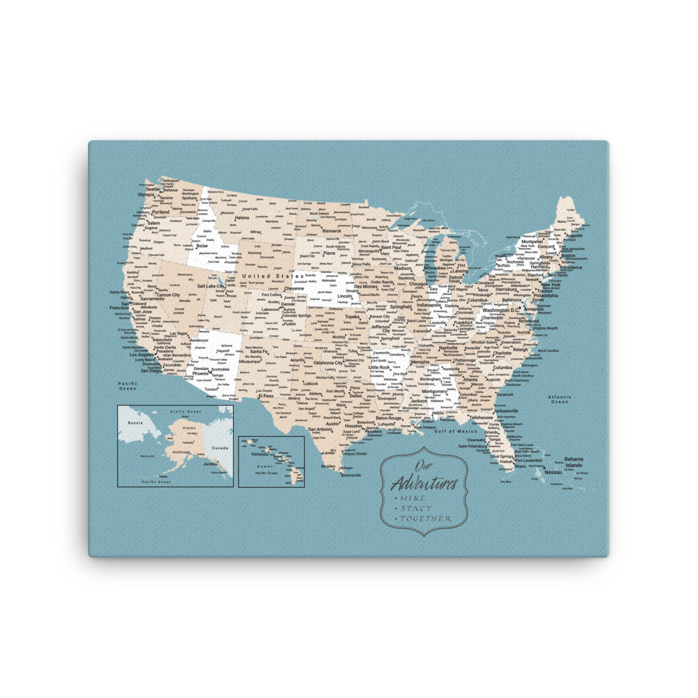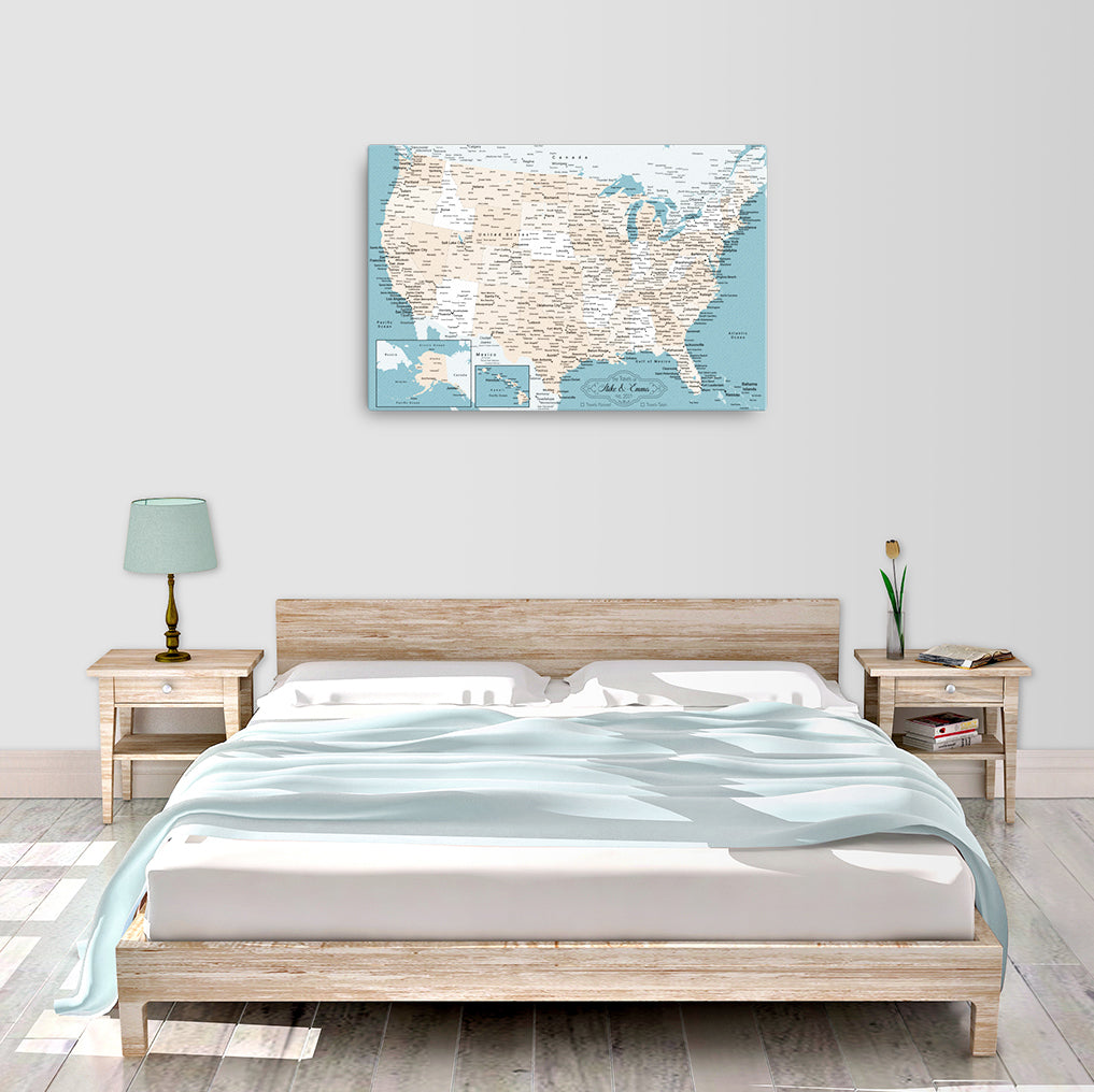 Map Of USA With 1,000 Pins - Light Blue and Tan