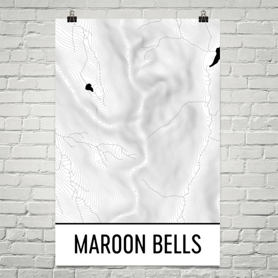 The Maroon Bells are two incredible peaks in the Elk range that produce an attractive layout that everyone who visits will remember. Commemorate this part of Colorado with this Maroon Bells print. See how the two peaks are laid out on this Colorado art print. Our hiking gift illustrates the full layout of the region in a special modern art-inspired fashion. Look as some of the small lakes and rivers in the region are formed to the side. The full detail of this Maroon Bells print makes it a wonderful print to highlight on the walls of your home or office.