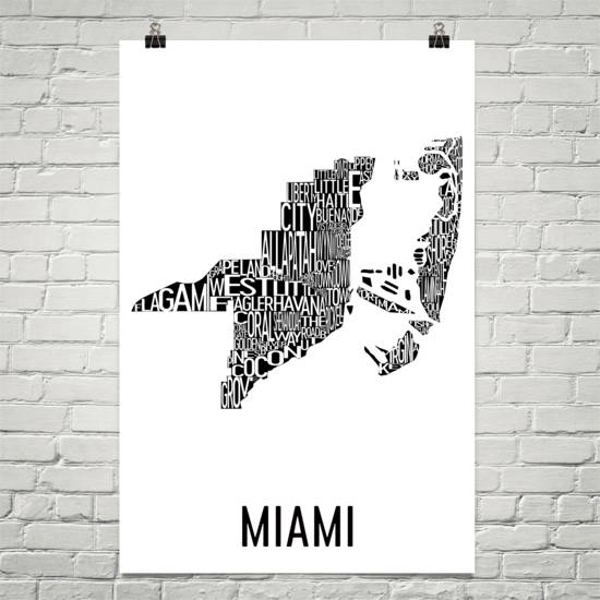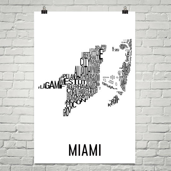 You don’t have to party all night long to get one of our Miami wall art prints although that never stopped anyone. Our Miami city prints include typography features that showcase all the neighborhoods that make the city come alive. Look as the city outline is organized with many of the small islands and bays around Miami Beach are included. See the cultural regions of Little Havana and Little Haiti or the flashy lands of South Beach and Coconut Grove. This modern art print design will remind you of the beaches, high rises, clubs and other places that make Miami one of the hottest places in the world.