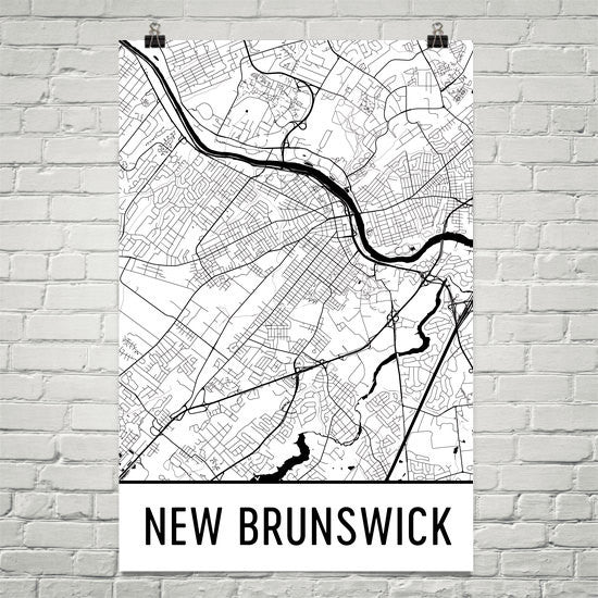 This street map features markings of all the roads and major bodies of water all around New Brunswick. This décor product features thousands of street lines and several bodies of water both big and small. Look all around to find your favorite landmarks around the city as you follow the highways, waterways and even rail or mass transit system lines. The poster will remind you of the many beautiful things that you will see all around the city.