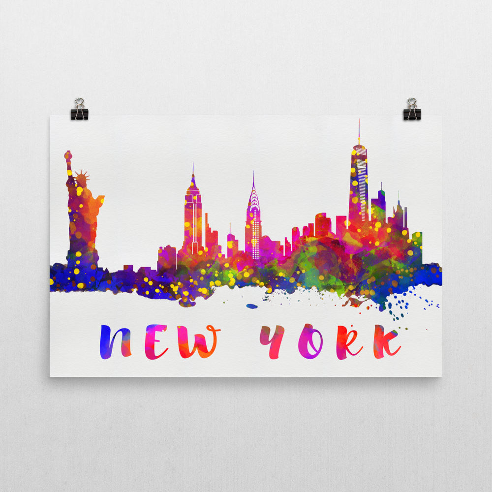 The memorable skyline of New York is truly something you will remember in your travels or even if you grew up in this great part of the country. Our New York skyline poster design is made with an impression attention to detail. Look for each individual building in the skyline and see how the artistic design creates a beautiful look all the way around. This has been made with an immense attention to detail. Each of these New York prints comes with a vibrant watercolor pattern in many colors.