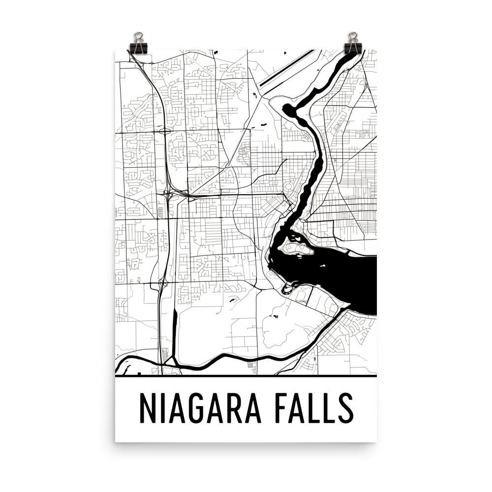 Honor your trip to Niagara Falls, New York with this street map print. The roads around the street map are detailed as you’ll see Cayuga Island, Niagara University and other key spots around the area. But the Falls themselves are the highlight of your art print. See the roads in detail around the Falls with some being on the Canadian side of the border.
