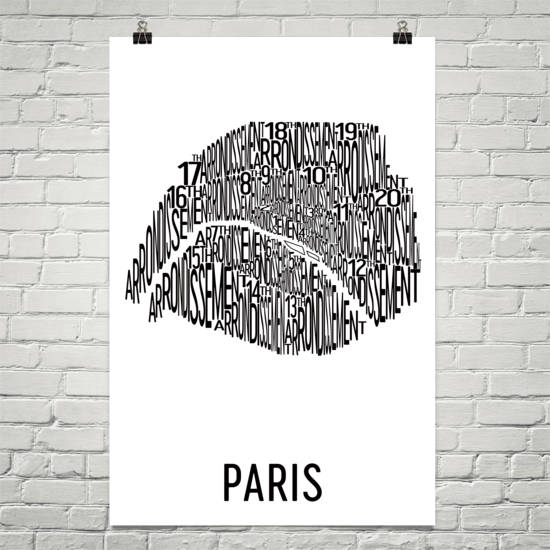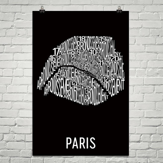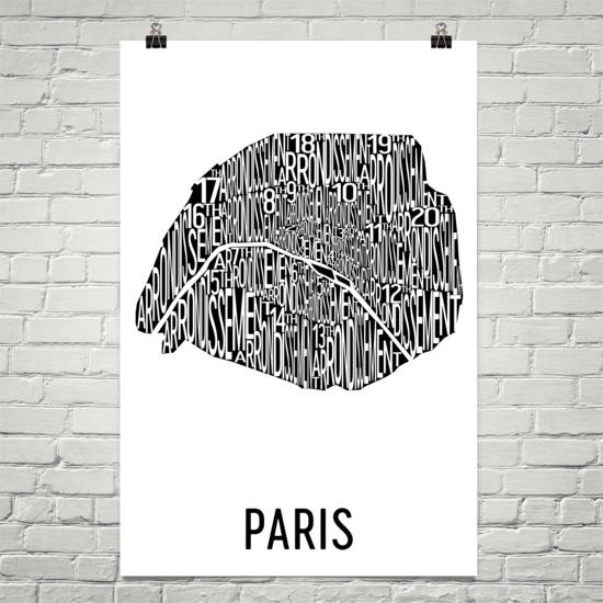 The romantic and picturesque city of Paris deserves only the best modern map art print. Our Paris wall art print shows off the city’s many neighborhoods including various locales along the Seine. The typography-based design specifically lists the arrondissements of the city by number. All twenty arrondissements are clearly labeled on each print. Look for the eighth arrondissement where the Champs-Elysees can be found or the seventh arrondissement where the iconic Eiffel Tower is located. All of these are laid out with a nice modern art look that will remind you of the beauty of the great City of Lights.