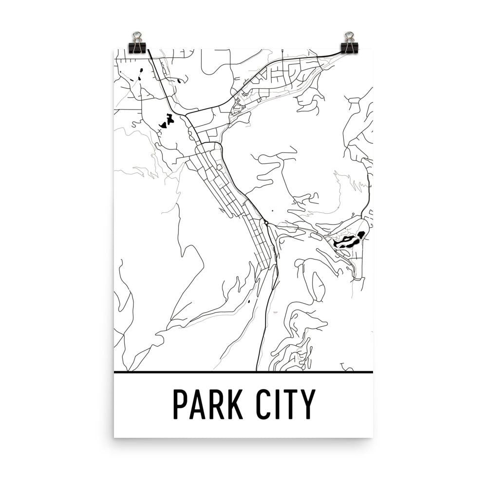 This street map features markings of all the roads and major bodies of water all around Park City UT. This décor product features thousands of street lines and several bodies of water both big and small. Look all around to find your favorite landmarks around the city as you follow the highways, waterways and even rail or mass transit system lines. The poster will remind you of the many beautiful things that you will see all around the city.