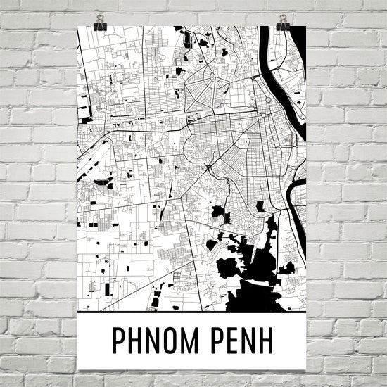 This street map features markings of all the roads and major bodies of water all around Phnom Penh. This décor product features thousands of street lines and several bodies of water both big and small. Look all around to find your favorite landmarks around the city as you follow the highways, waterways and even rail or mass transit system lines. The poster will remind you of the many beautiful things that you will see all around the city.