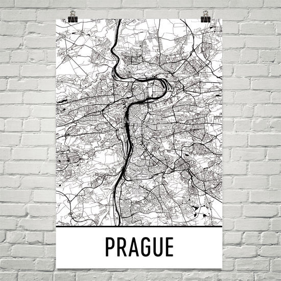 Prague street map prints display the intriguing mix of roads around this part of the Czech Republic. The roads around the City of a Hundred Spires includes the classic Astronomical Clock and many Gothic and baroque churches. See where they are all located on your map art print of this great city.
