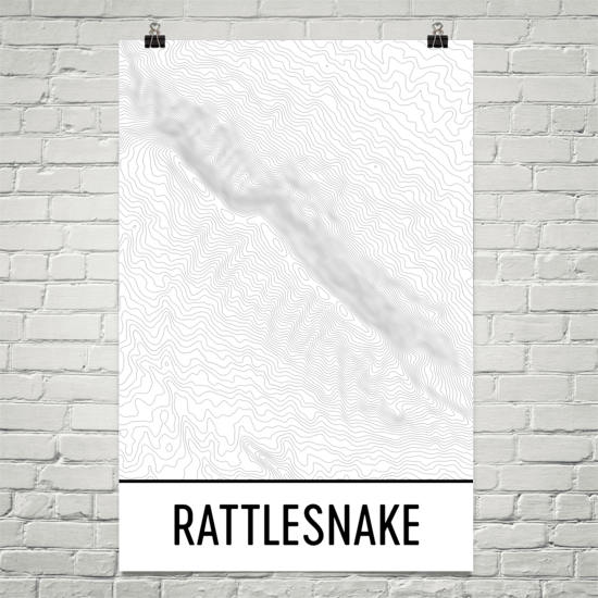 Look as the Rattlesnake Ridge moves from the south to north on this modern art poster. The Rattlesnake Ridge print shows the mountain as it stretches along the state of Washington with the Raging River going through the middle. Look as hundreds of contour lines move along the map with many of them moving more than three thousand feet in elevation. Our poster will bring back memories of the rocky paths and distinct forest spaces that make this part of Washington a memorable place for hiking. Order this for the hiker in your life or to celebrate your conquering of this mountain.