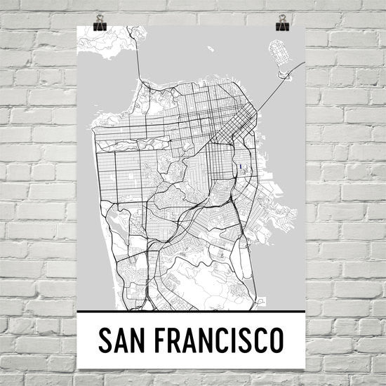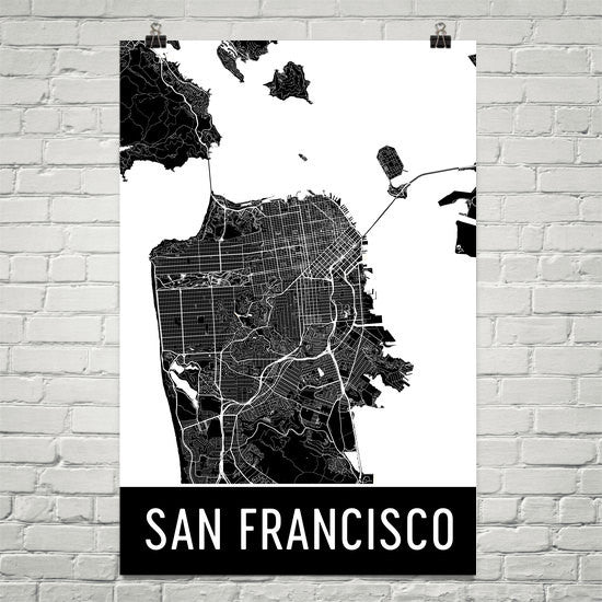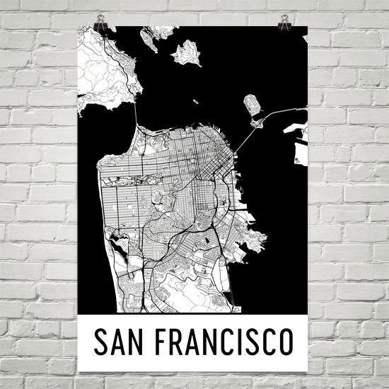 This street map features markings of all the roads and major bodies of water all around San Francisco. This décor product features thousands of street lines and several bodies of water both big and small. Look all around to find your favorite landmarks around the city as you follow the highways, waterways and even rail or mass transit system lines. The poster will remind you of the many beautiful things that you will see all around the city.
