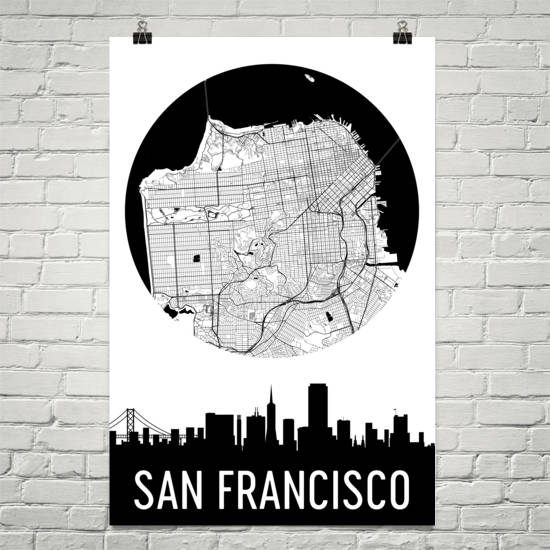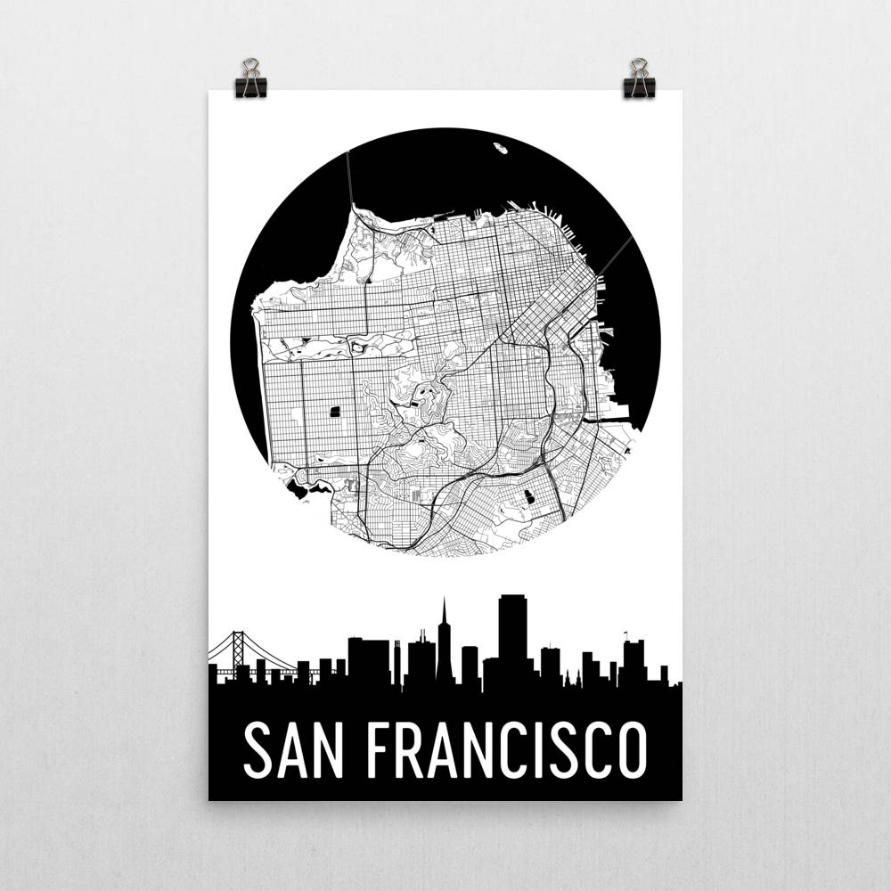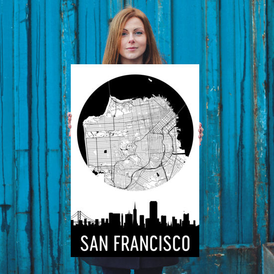 The iconic city of San Francisco has never looked better on this city map piece. Look as the San Francisco city map to the top shows the many roads that move into the city including the famous Lombard Street. All of the popular neighborhoods of San Francisco are on display including the Mission District, Chinatown, Embarcadero and Tenderloin. Go to the bottom to see the Golden Gate Bridge, Transamerica Pyramid and many other important buildings on this San Francisco skyline art print. This is a souvenir of the city that you will surely want to bring home after visiting this famous place.