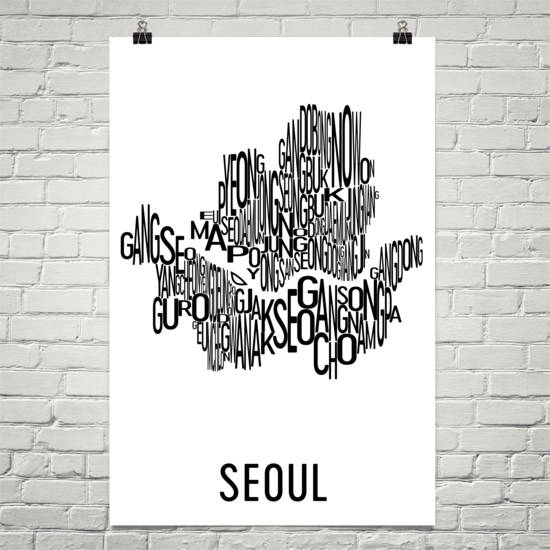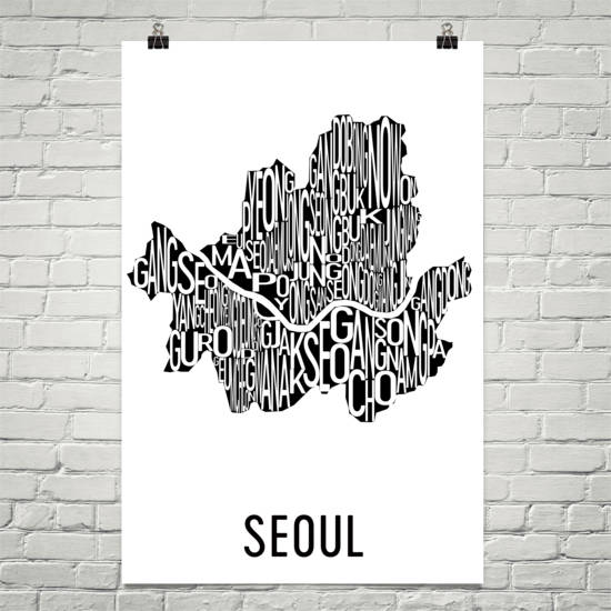 Seoul is a true capital of commerce and culture in the heart of South Korea. This Seoul art poster proudly displays the neighborhoods that make this metropolis what it truly is. Look as each neighborhood is labeled by a series of letters of varying heights and sizes. These link well with each other and fit perfectly within the Seoul city outline. See how the neighborhoods go well alongside the Cheonggyecheon river as it moves through the land. This is a grand gift for anyone who wishes to display one’s Korean heritage. It is also a brilliant gift for any member of the military who has been stationed out here in the past.