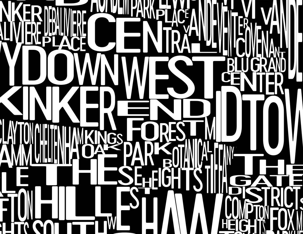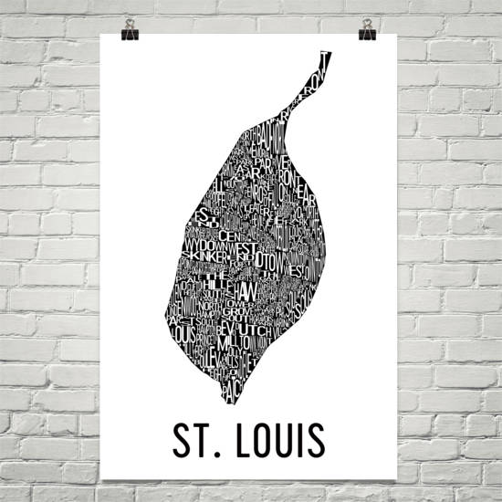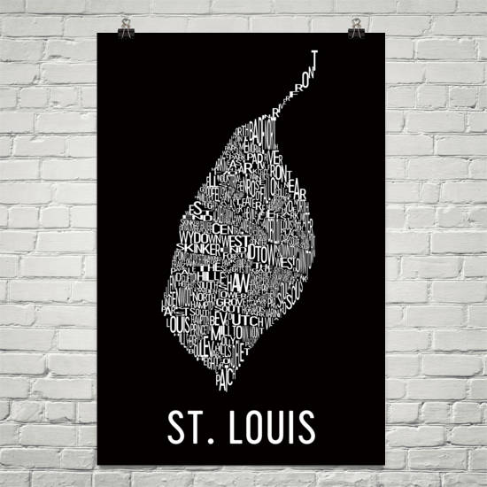 Check out the neighborhoods of the Gateway to the West on our St. Louis wall art print. This St. Louis neighborhood typography map art city print shows all the neighborhoods of the city laid out in a distinct manner. Each neighborhood is represented by its name with the letters coming in varying sizes. These letters are all organized around the city’s outline including the narrow area around the northern part of the city. Look at the city conforms to the western shore of the Mississippi River. This St. Louis map print will remind you of the beautiful city and its many fine communities.