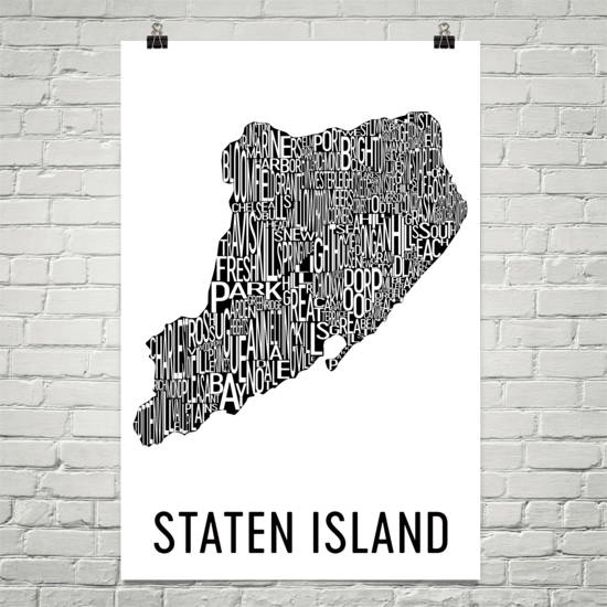 Staten Island is a borough of New York that is so amazing it needs to be contained within its own island. Our Staten Island wall art print displays the neighborhoods of the borough through an outstanding typography layout. Find Stapleton, West New Brighton, Tottenville and all your other favorite regions of the island on each print. This modern art-inspired print shows each neighborhood listed by name. Each name comes in a different size based on how large each neighborhood is. We have put in a great amount of detail to highlight all the places that make Staten Island such a popular place in New York.