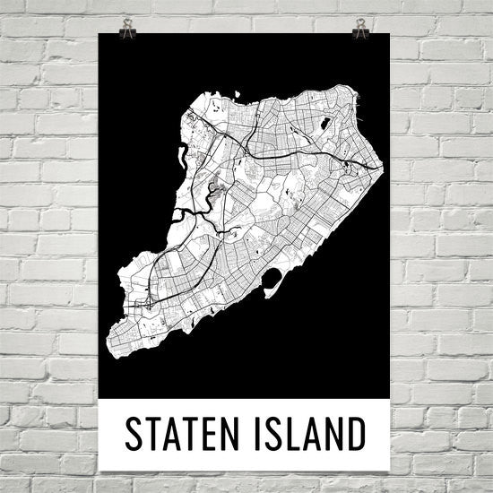 This street map features markings of all the roads and major bodies of water all around Staten Island. This décor product features thousands of street lines and several bodies of water both big and small. Look all around to find your favorite landmarks around the city as you follow the highways, waterways and even rail or mass transit system lines. The poster will remind you of the many beautiful things that you will see all around the city.