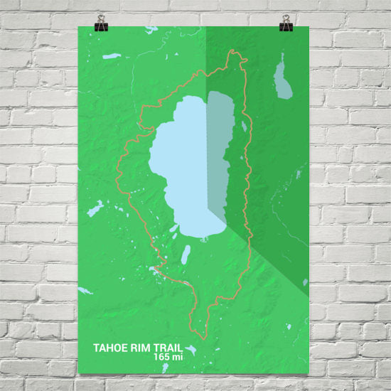 The Tahoe Rim Trail is a beautiful place that features some appealing scenes that no one will ever forget. Honor a trip to this part of the country with our Tahoe Rim Trail map. Our Tahoe Rim gift shows off the full route as it moves around Lake Tahoe and goes between California and Nevada in a full loop. The entire 165-mile round is highlighted on this gift. Don’t forget the many small lakes surrounding the whole area. The print will remind you of the beautiful snow-capped mountains and forested areas surrounding the region with the quaint and calm titular lake standing in the middle of it all.
