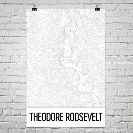 The Theodore Roosevelt National Park starts as the Badlands and Great Plains meet up with each other. See how the Little Missouri River and other features of this park stand out on your Theodore Roosevelt National Park print. This national park art piece shows the park as it is formed on the western part of North Dakota. Look as the topographic features show the park moving from north to south. It will bring back memories of the beautiful features of the region including the unique plains and the many spots where you can find the bison as they move along the countryside.