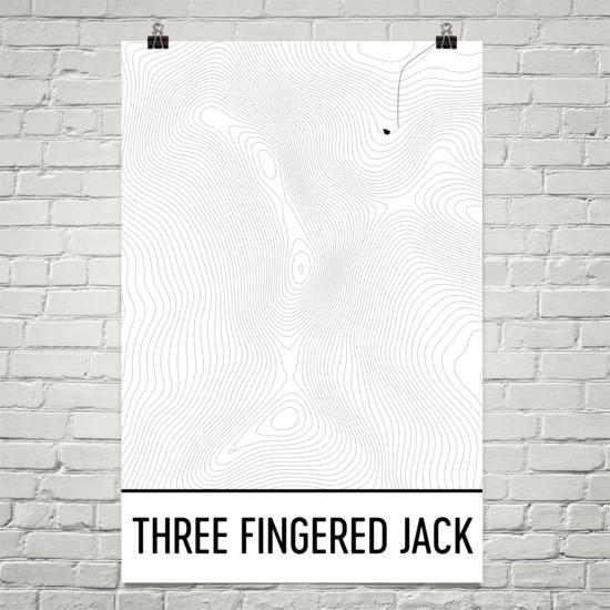 The memorable shape of the Three Fingered Jack peak in Oregon makes it immediately noticeable from afar. This Three Fingered Jack Oregon poster shows the memorable shape in a modern art style. Look for the contour lines as they form the peaks of the mountain from up in the sky. See where some of the old lava flows around the shield volcano move. This is a special print that showcases a dynamic part of the state of Oregon. Order this as a souvenir to commemorate a trip to the region with. It will bring back visions of beautiful rock formations and rolling forests.