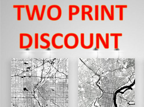 See two maps you like? We'll give you a discount to buy them both! Simply order this listing and tell us the size, color, and cities that you would like printed!