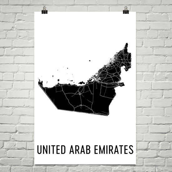 All the Emirates of the Middle East are on display on our UAE gift prints. See our United Arab Emirates art piece and spot all the bustling cities of the region and its many deserts. Go east to see the city of Dubai and its massive super-tall towers. Go a little further south to the growing financial center of Abu Dhabi. Watch the roads that link to these cities and see them go along many of the manmade islands standing out in the Persian Gulf. Our UAE gift print is spectacular and is as modern as the beautiful country itself. Best of all, you don’t have to spend a fortune to get one of these.