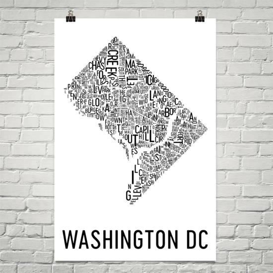 The nation’s capital is a city filled with many outstanding neighborhoods. Our Washington DC neighborhood typography map art city print shows all of these great places. All four quadrants are on clear display while the Potomac River gets into the city. Look for Foggy Bottom, Anacostia, Georgetown Tenleytown, Takoma Park and all the other popular spots around the capital. Our Washington DC wall art prints show this outstanding city in all its glory and highlight everything that makes the capital such an important and popular place. This also makes for a great gift for people who have traveled to the city in the past.